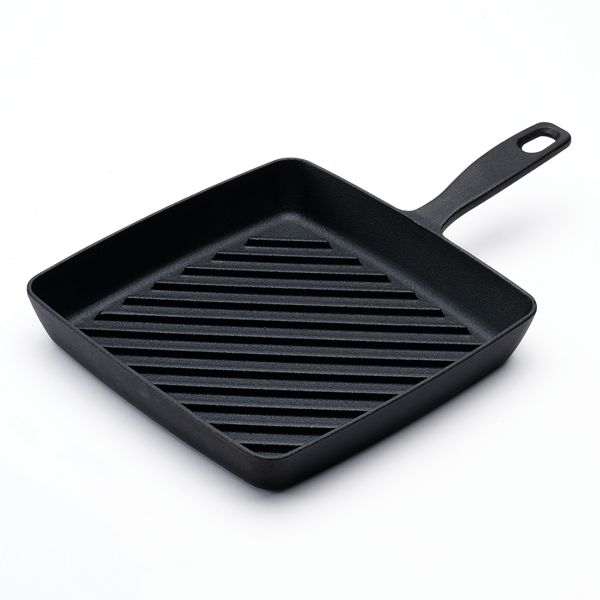 10 5 inch square seasoned cast iron grill pan a modern twist on a timeless classic this lodge square cast iron grill pan features grill ribs that elevate food and collect cooking drippings.